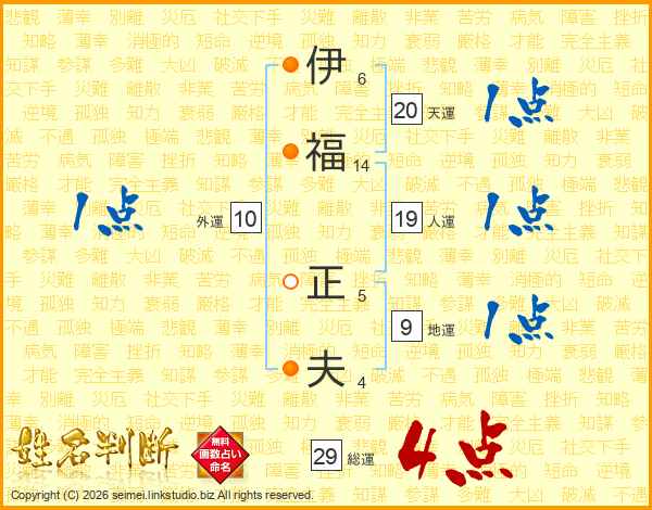 伊(6画)福(14画) 正(5画)夫(4画)