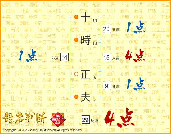 十時正夫さんの総運は29画の4点!