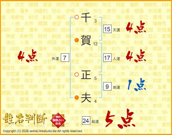 千賀正夫さんの総運は24画の5点!