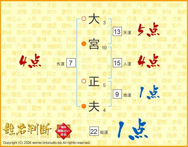 大宮正夫さんの総運は22画の1点!