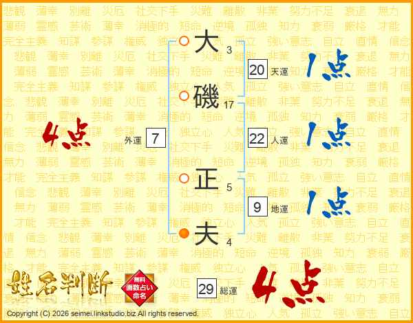 大磯正夫さんの総運は29画の4点!