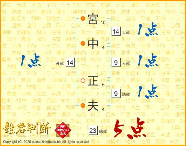 宮中正夫さんの総運は23画の5点!