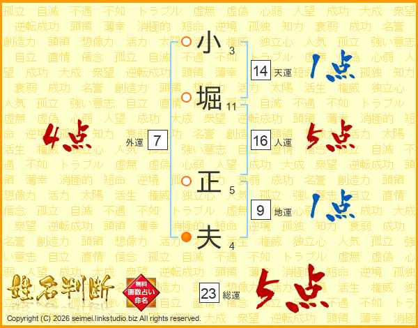 小堀正夫さんの総運は23画の5点!