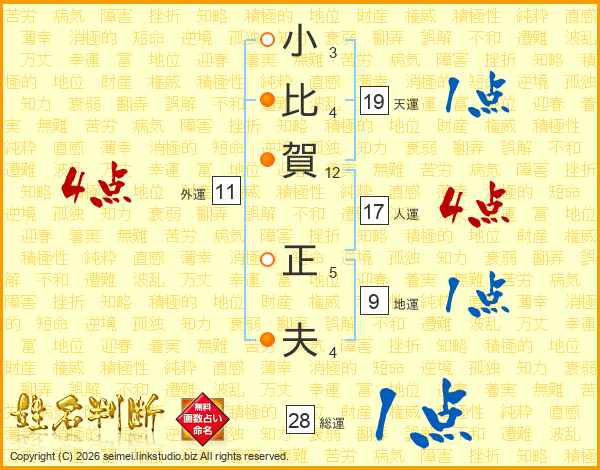 小(3画)比(4画)賀(12画) 正(5画)夫(4画)