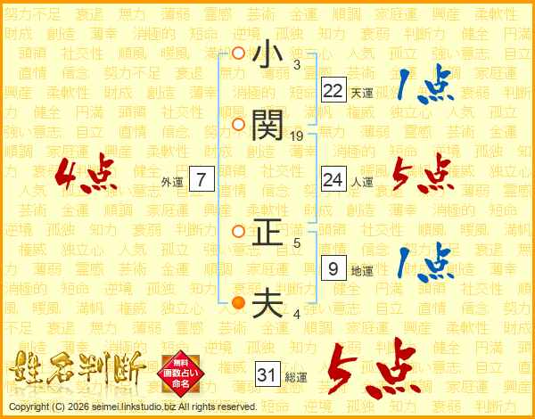 小関正夫さんの総運は31画の5点!