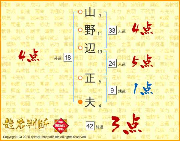 山野辺正夫さんの天運は33画の4点!