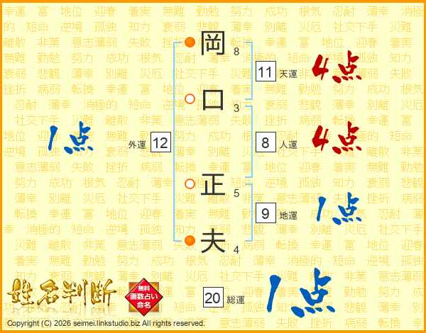 岡口正夫さんの天運は11画の4点!