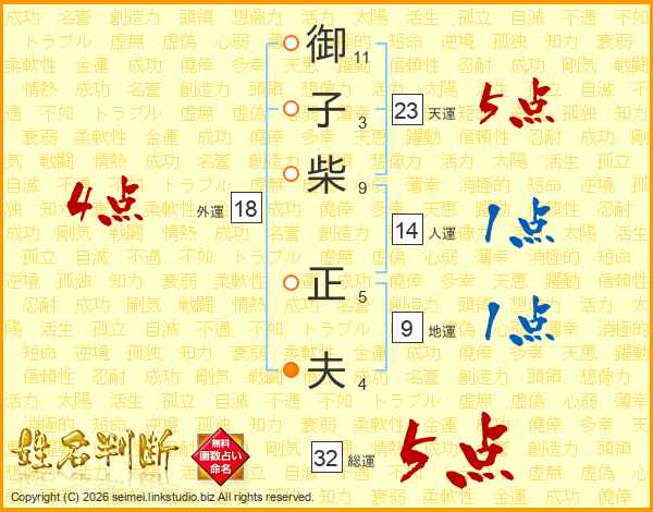 御子柴正夫さんの総運は32画の5点!