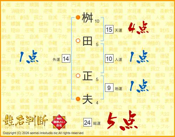 桝田正夫さんの総運は24画の5点!
