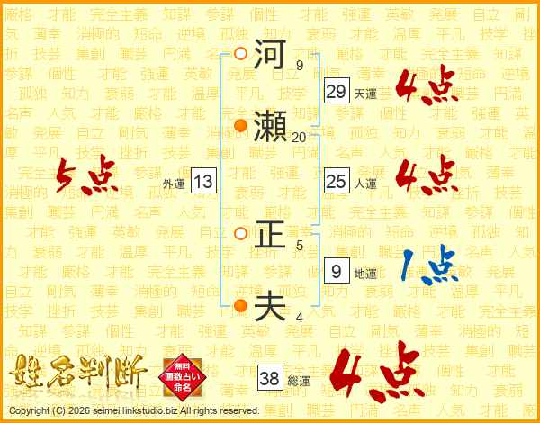 河瀬正夫さんの総運は38画の4点!