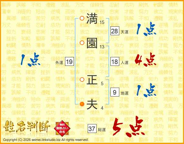 満園正夫さんの総運は37画の5点!