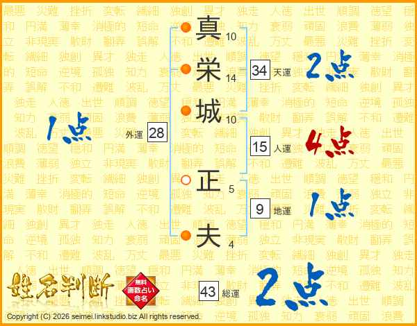 真(10画)栄(14画)城(10画) 正(5画)夫(4画)