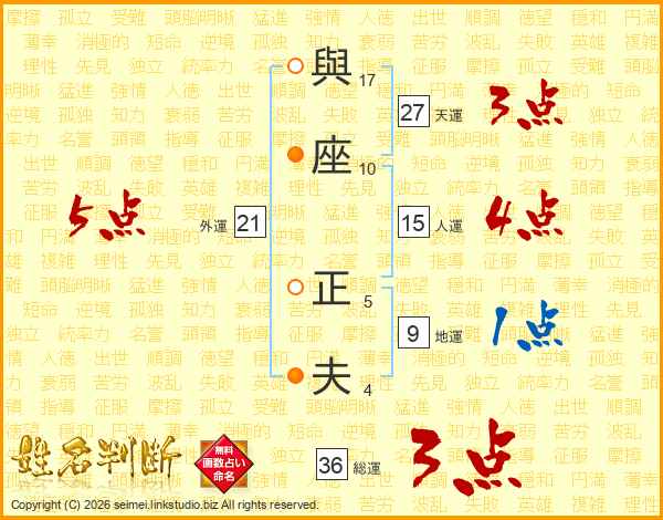 與座正夫さんの天運は27画の3点!