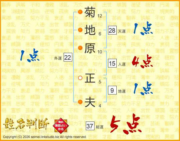 菊地原正夫さんの総運は37画の5点!
