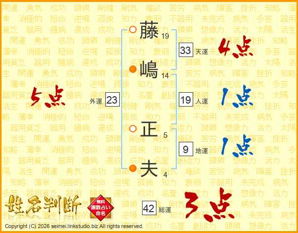 藤(19画)嶋(14画) 正(5画)夫(4画)