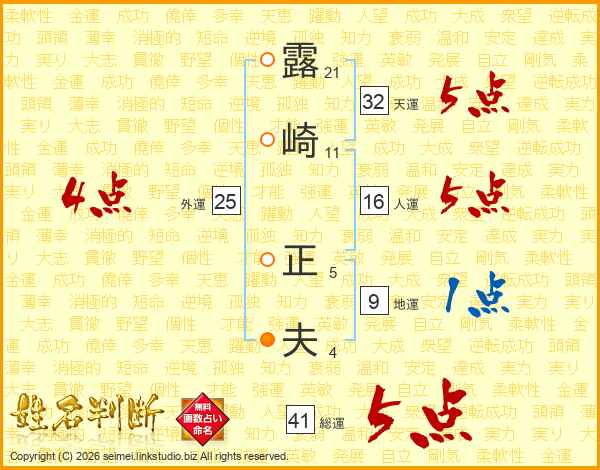 露崎正夫さんの総運は41画の5点!