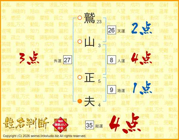 鷲山正夫さんの総運は35画の4点!