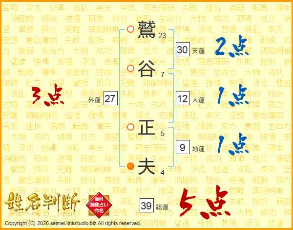 鷲谷正夫さんの総運は39画の5点!