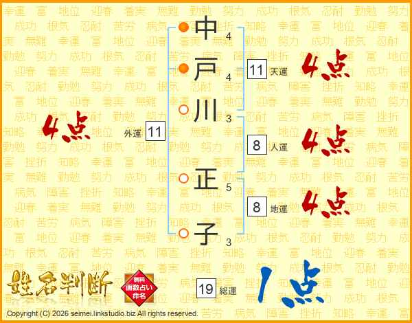中(4画)戸(4画)川(3画) 正(5画)子(3画)