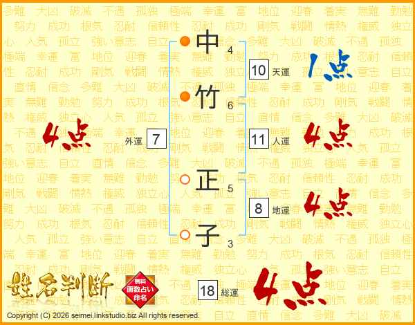 中竹正子さんの人運は11画の4点!