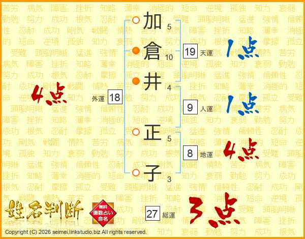 加倉井正子さんの外運は18画の4点!