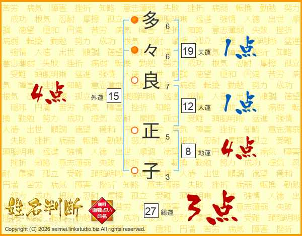 多々良正子さんの総運は27画の3点!