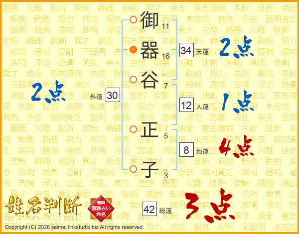 御器谷正子さんの総運は42画の3点!