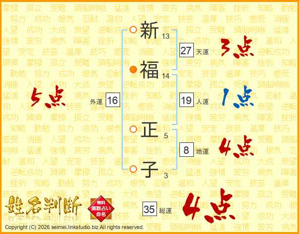 新(13画)福(14画) 正(5画)子(3画)