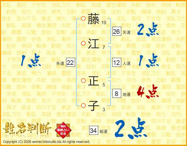 藤江正子さんの天運は26画の2点!