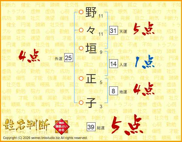 野々垣正子さんの総運は39画の5点!