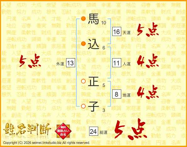 馬込正子さんの総運は24画の5点!