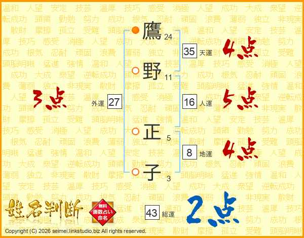 鷹野正子さんの天運は35画の4点!