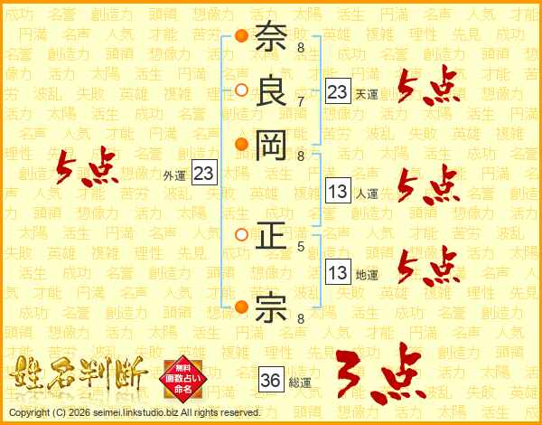 奈良岡正宗さんの天運は23画の5点!