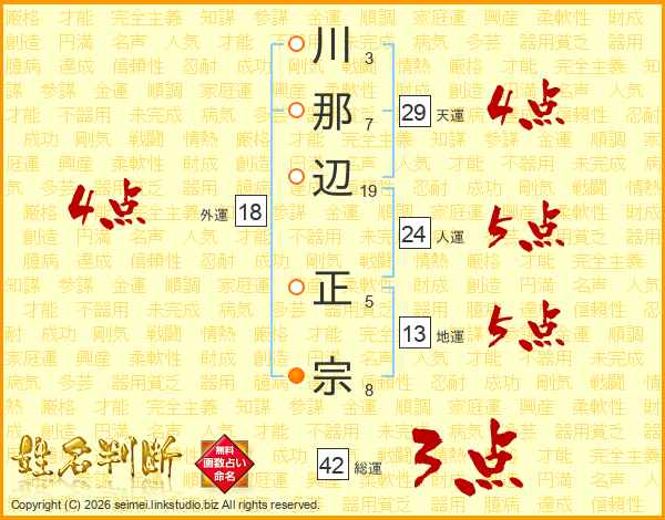 川那辺正宗さんの総運は42画の3点!