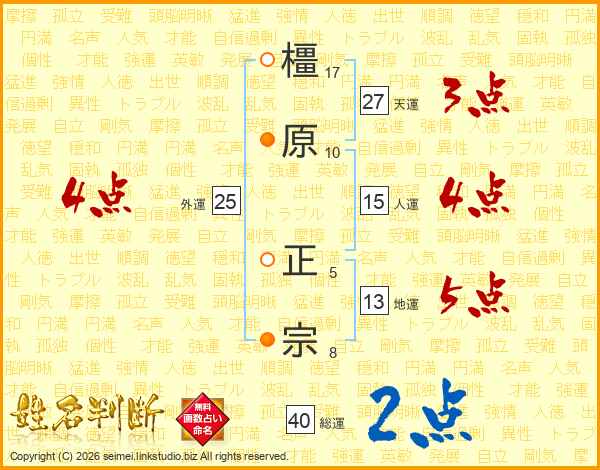橿原正宗さんの総運は40画の2点!