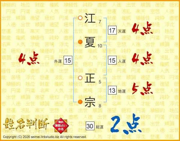 江夏正宗さんの総運は30画の2点!