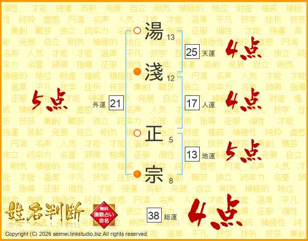 湯淺正宗さんの総運は38画の4点!