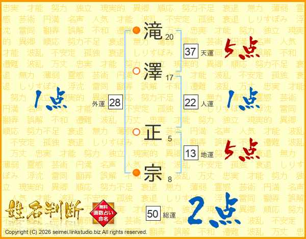 滝澤正宗さんの総運は50画の2点!
