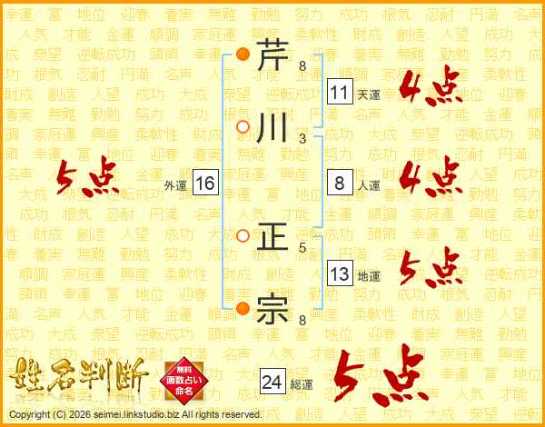 芹川正宗さんの総運は24画の5点!