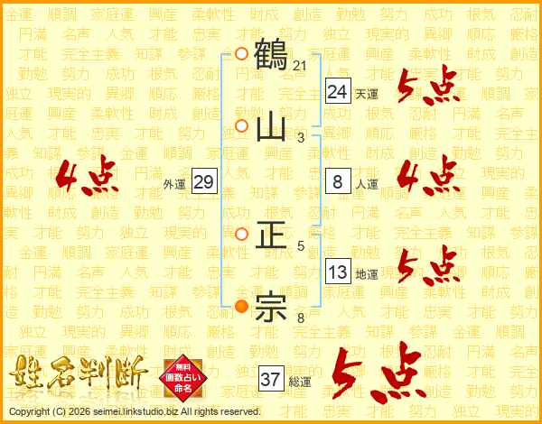 鶴山正宗さんの総運は37画の5点!
