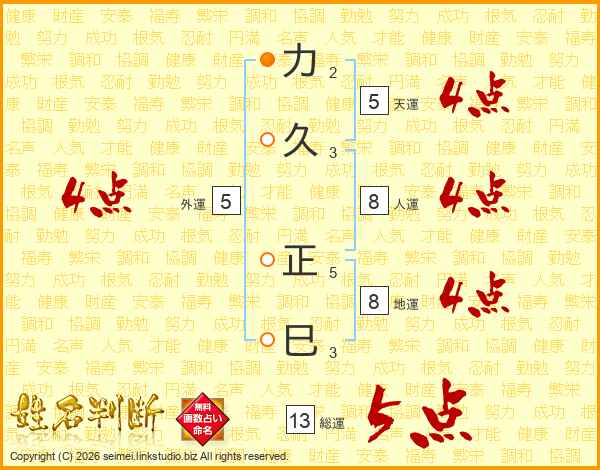 力久正巳さんの総運は13画の5点!