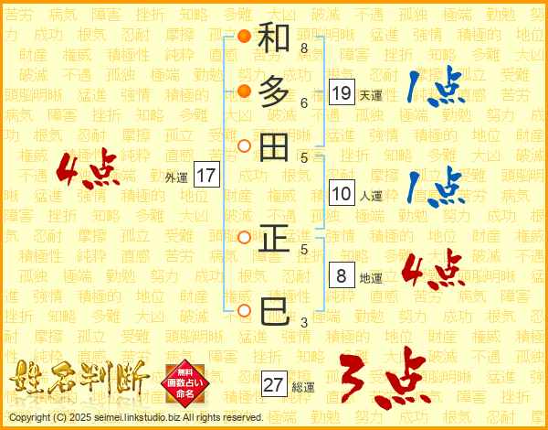 和(8画)多(6画)田(5画) 正(5画)巳(3画)