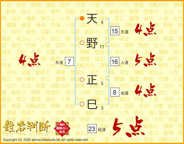 天野正巳さんの総運は23画の5点!