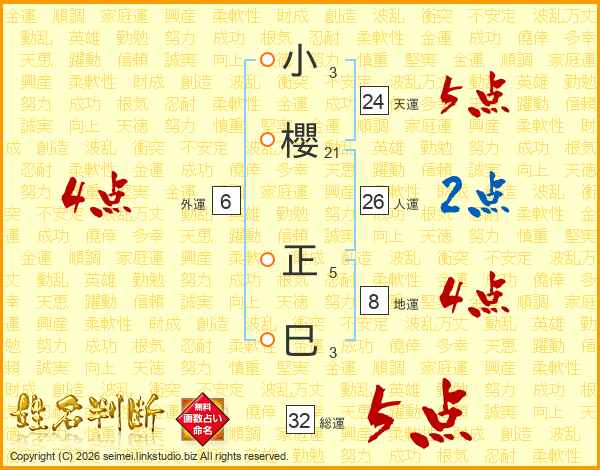 小櫻正巳さんの総運は32画の5点!