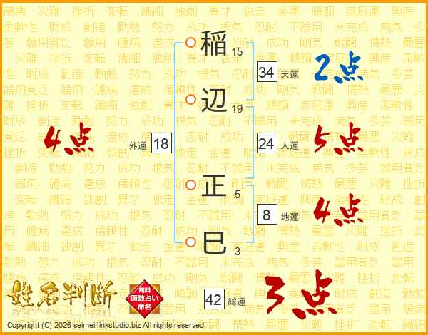 稲辺正巳さんの人運は24画の5点!