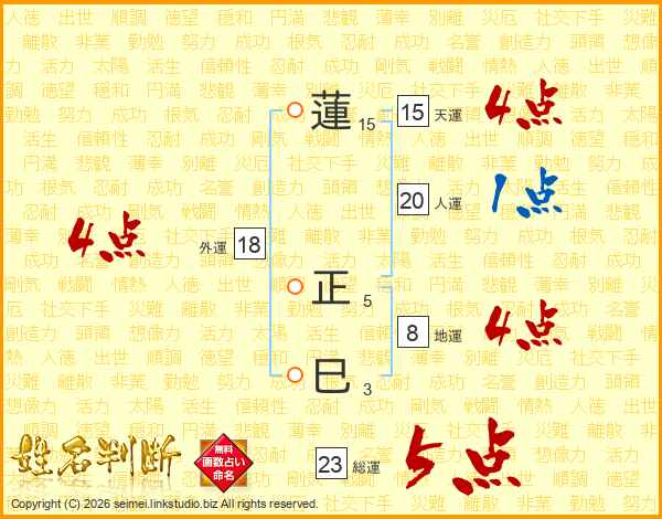 蓮正巳さんの総運は23画の5点!