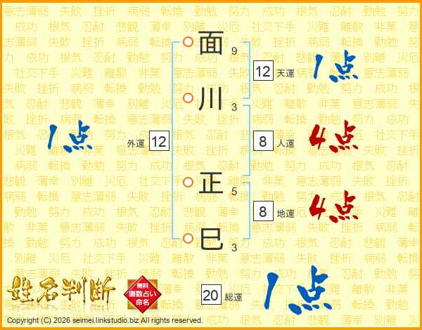 面川正巳さんの人運は8画の4点!