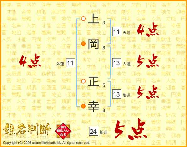 上岡正幸さんの総運は24画の5点!