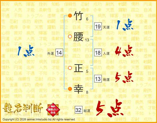 竹腰正幸さんの総運は32画の5点!