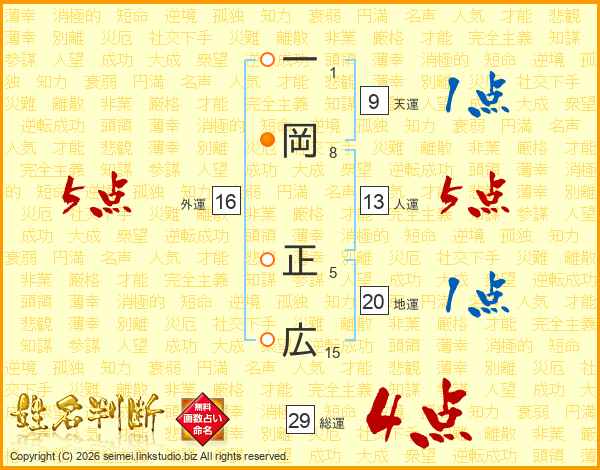一岡正広さんの総運は29画の4点!
